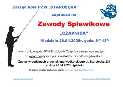Zapraszamy na pierwsze zawody wędkarskie nad Czapnicą w 2026 r. Zbiórka o godzinie 5.30 – 6.00 przy Rybakówce ul. Bronisława Malinowskiego 45. Przypominamy o zapisach do piątku 10.04.2026 r. w...