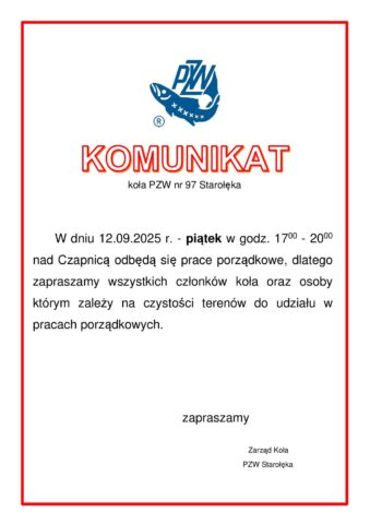 Posted on 13 września 202513 września 2025 Komunikaty Komunikat koła: 20.09.2025r. zawody dla sędziów Okręgu PZW Poznań nad Czapnicą